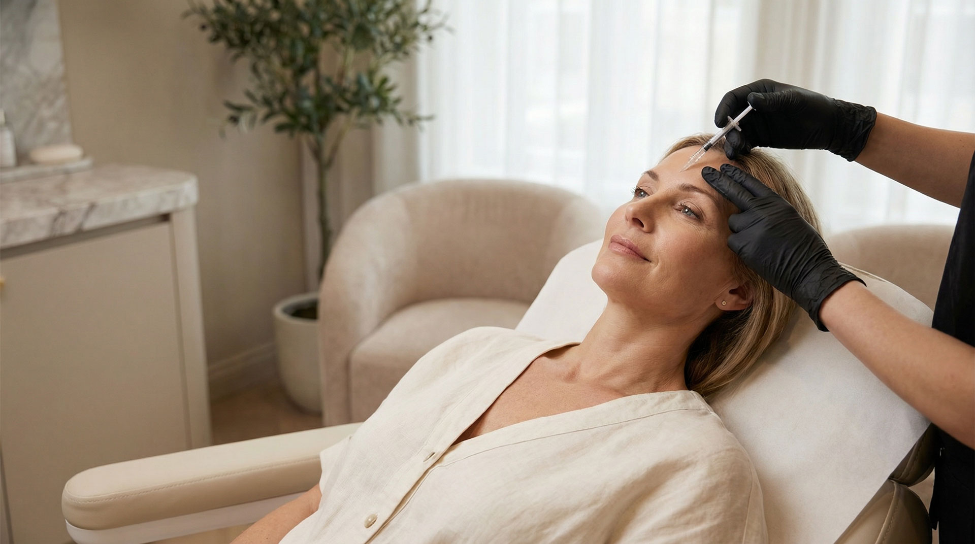 Se realizan pequeñas infiltraciones en puntos estratégicos de la frente, el entrecejo y las patas de gallo. El objetivo es suavizar la contracción muscular, no paralizar la cara, manteniendo la expresividad natural.
